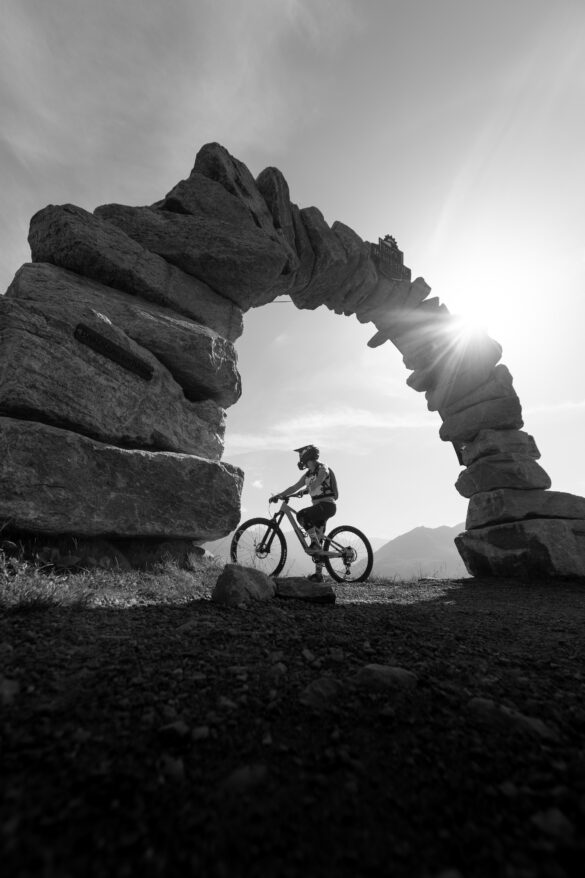 Een aantal trails is voorzien van een karakteristieke ‘poort’ naar het Bike Republic, zo ook de eerste afdaling die we gaan doen. We rijden onder een stenen boog door, waar...