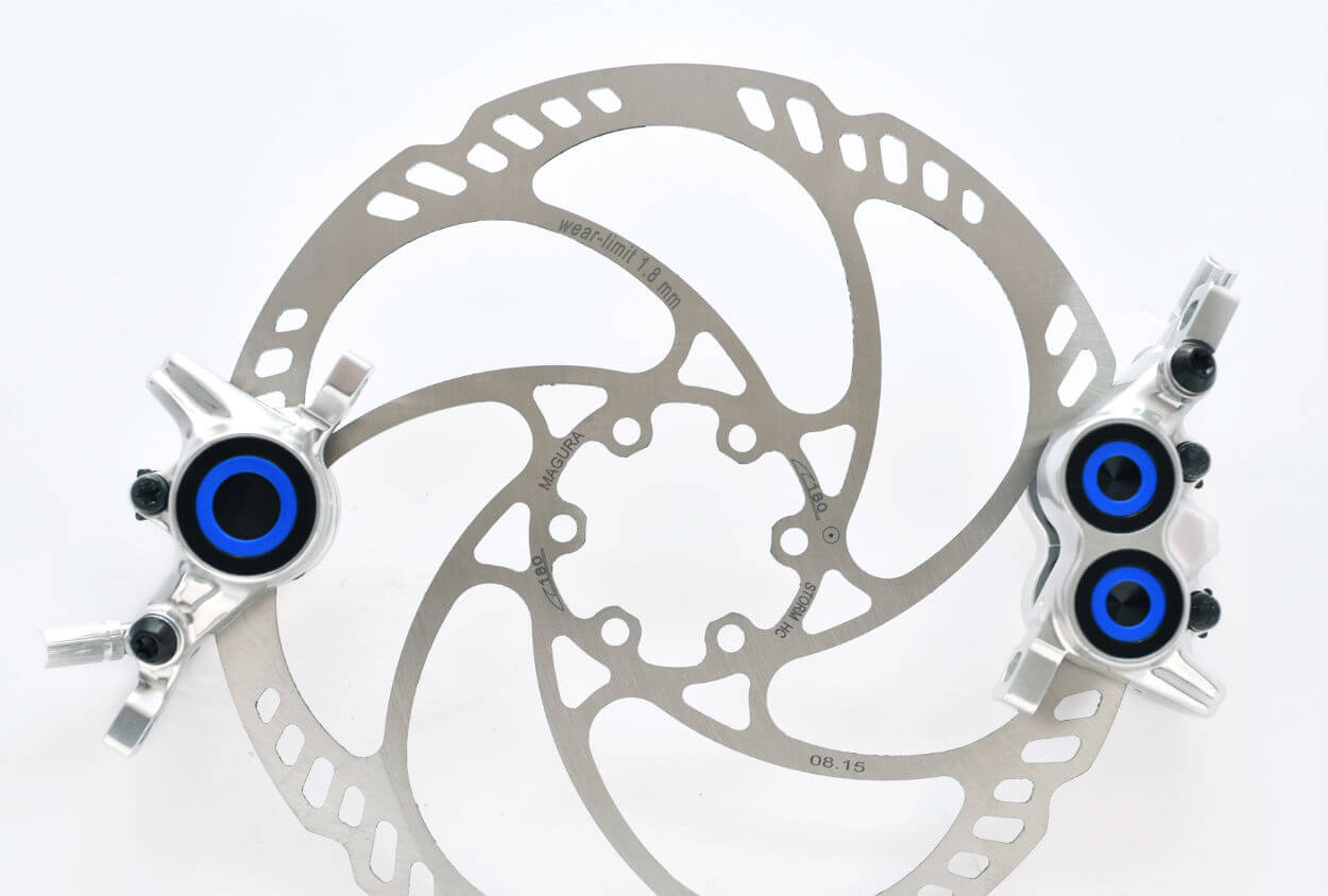 Vier zuigers vooraan, twee achteraan, dat is heel kort door de bocht het concept van de nieuwe Magura MT Trail carbon schijfremmen. Diepgaand onderzoek en de inzet van alle technische know-how van de ingenieurs van Magura heeft tot deze oplossing geleid.