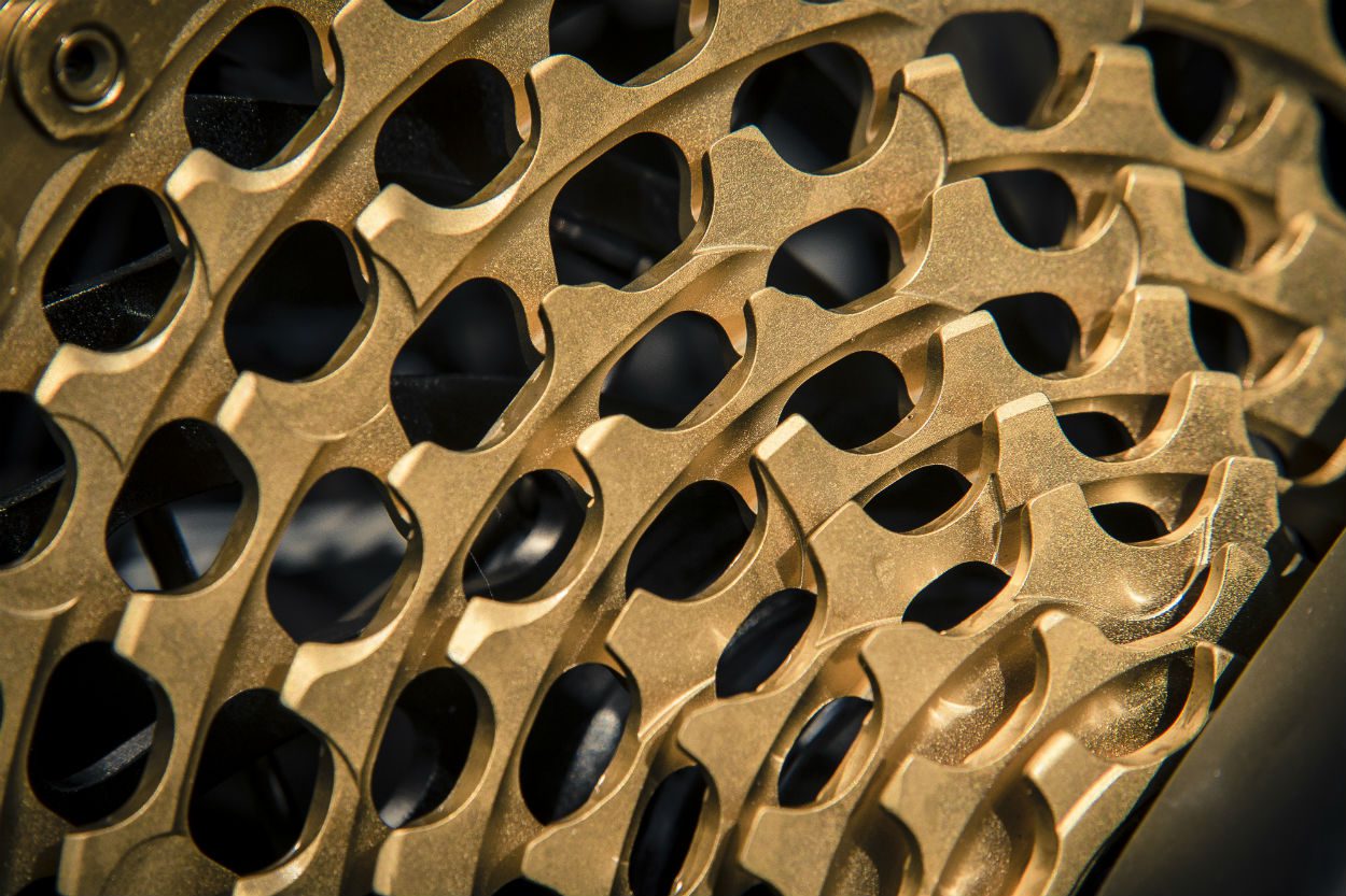 Het laatste stukje argumentatie over de voordelen van een voorderailleur op een mountainbike kan nu ook officieel ten grave. Deze 12-speed cassette met 10 tot 50 tanden biedt een optimaal 500% verzetsbereik en is aanzienlijk lichter dan 2x systemen. Hij is gebaseerd op de X-Dome™ architectuur die, zoals onafhankelijke tests uitwijzen, de sterkste cassettes op de markt oplevert.